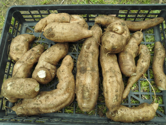やーこんを掘りました。 昨年の夏は暑かったせいか、やーこんはよくできているようです。 たくさんできました。せっせと食べましよう。