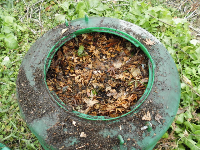 掃除を兼ねて落ち葉を集めて腐葉土をつくります。 作物のためには腐葉土はとても価値があります。 ポリ容器に入れて足で踏み固めます。水をか...
