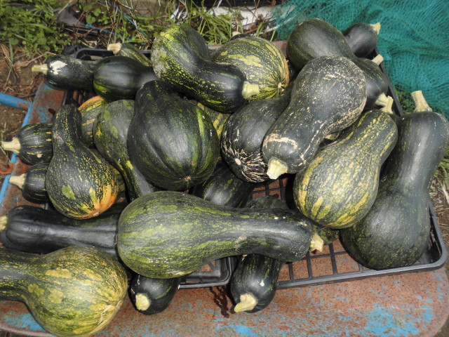 万次郎カボチャを収穫しました。甘いカボチャは猪にやられました。 万次郎カボチャは甘味が少ないので猪も食べなかったのです。甘味は少ないですが、...