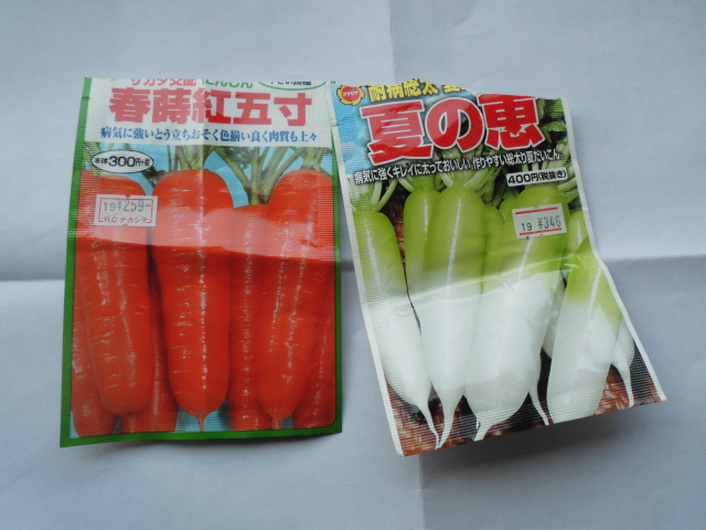 だいこん「夏の恵」とにんじん「春蒔紅五寸」の種をまきました。 いずれもアタリア。