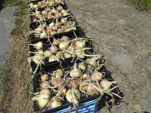 早生玉ねぎを収穫しました。冬が暖かかったせいか、少し早いようです。 玉も大きくよくできています。 しっかり干して陰につるします。