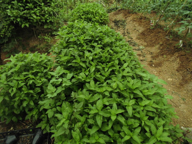 藍(あい)の苗が大きくなりました。今日は雨なので藍を定植しました。 5列植えました。梅雨明けには大きくなるでしょう。