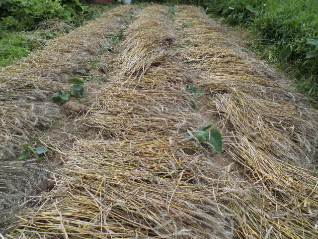 パン用小麦セトノキララを刈りました。 小麦の間には里芋を植えています。これから里芋がすくすくと成長します。 小麦は雨にあわないように、ビニー...