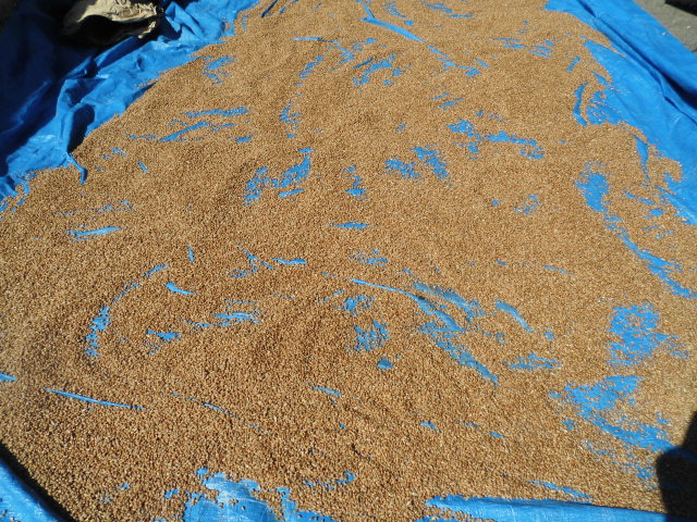 パン用小麦、みなみのかおりの天日干しをしました。 完全無農薬なので、天日干しをしないと虫が入ります。