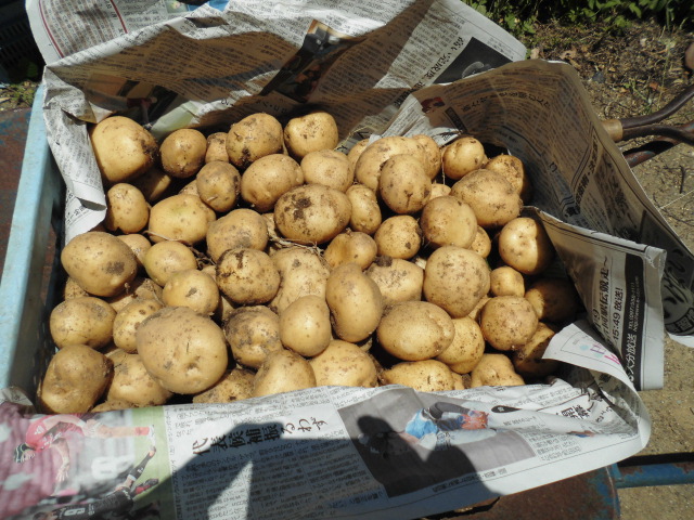 雨に会わないうちに春ジャガイモの収穫を完了しました。 みかんのコンテナ5箱ありました。 粒もまあまあです。