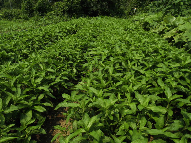 藍の追肥として発酵油粕をやりました。 順調に育っています。 8月18日(日)に大分農業文化公園「草木染め講座」で藍の生葉染めをやります。 夏...