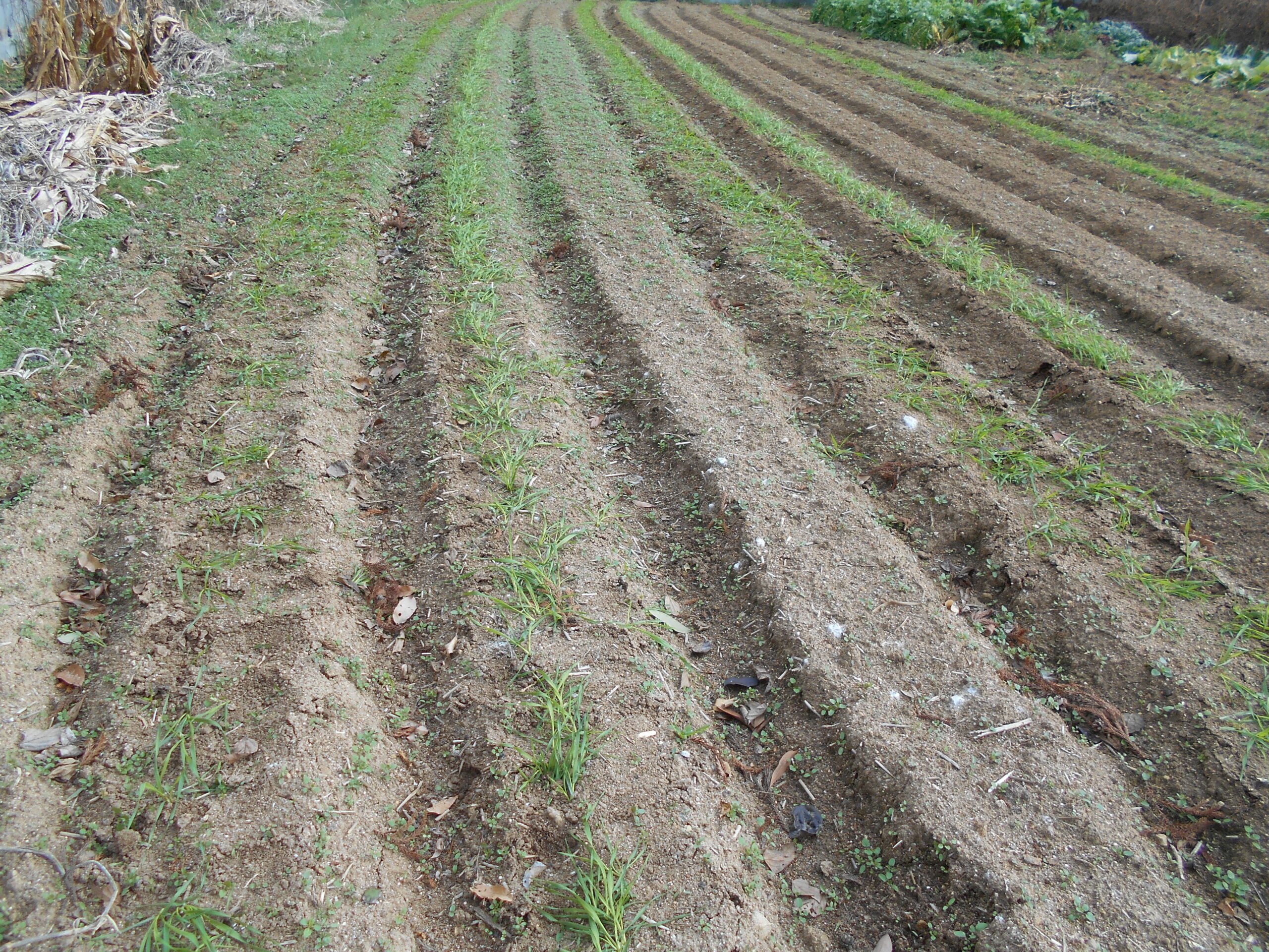 パン用小麦の麦踏をおこないました。 蒔くのがおくれたので例年より2週間程遅れています。 踏みつけられるとよく育ちます。