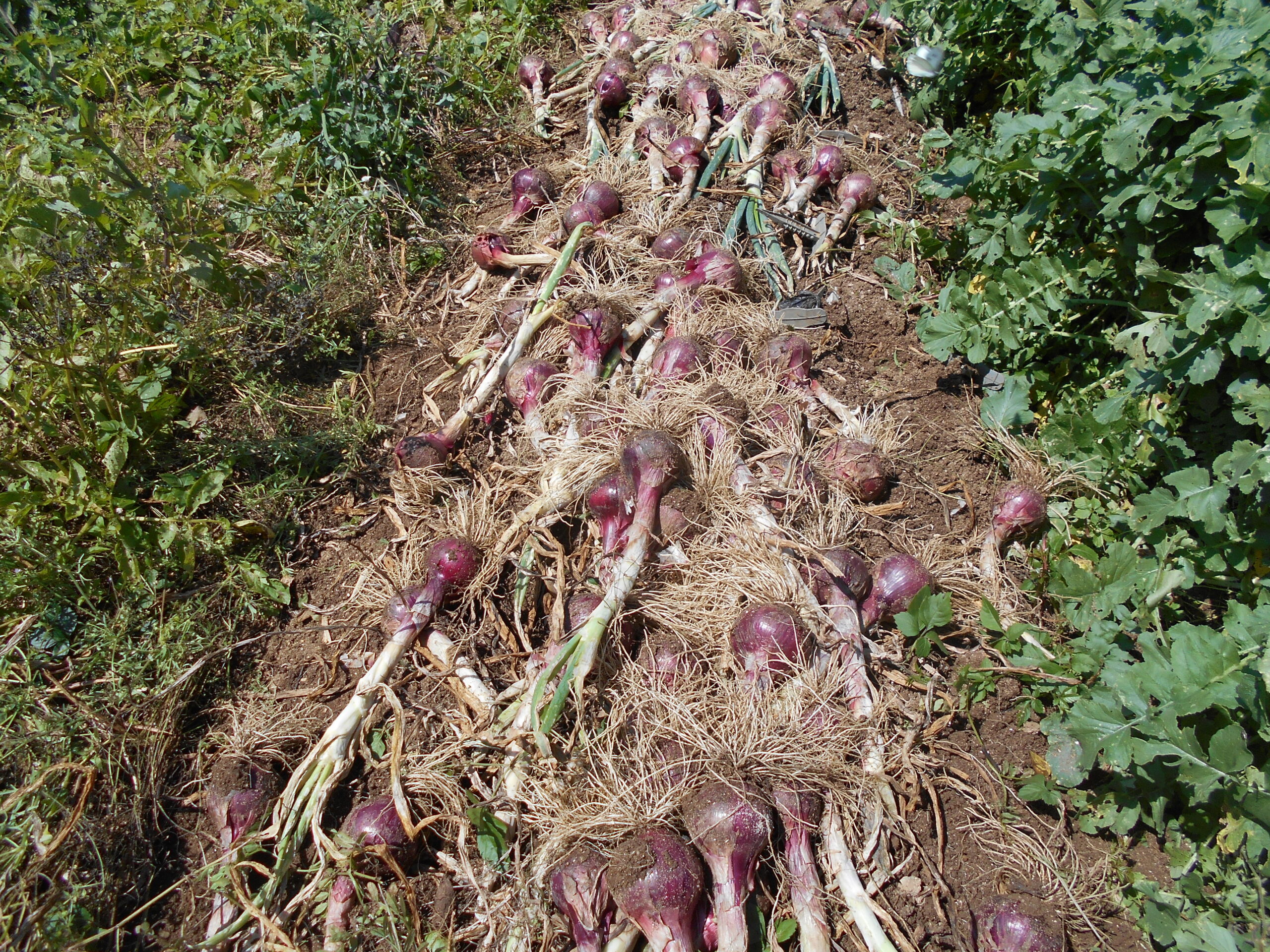 梅雨が来る前に赤たまねぎを収穫しました。 たまねぎ収穫のめわすは茎が折れてくるときです。 根を切って数日間干して、陰に吊るします。 ...