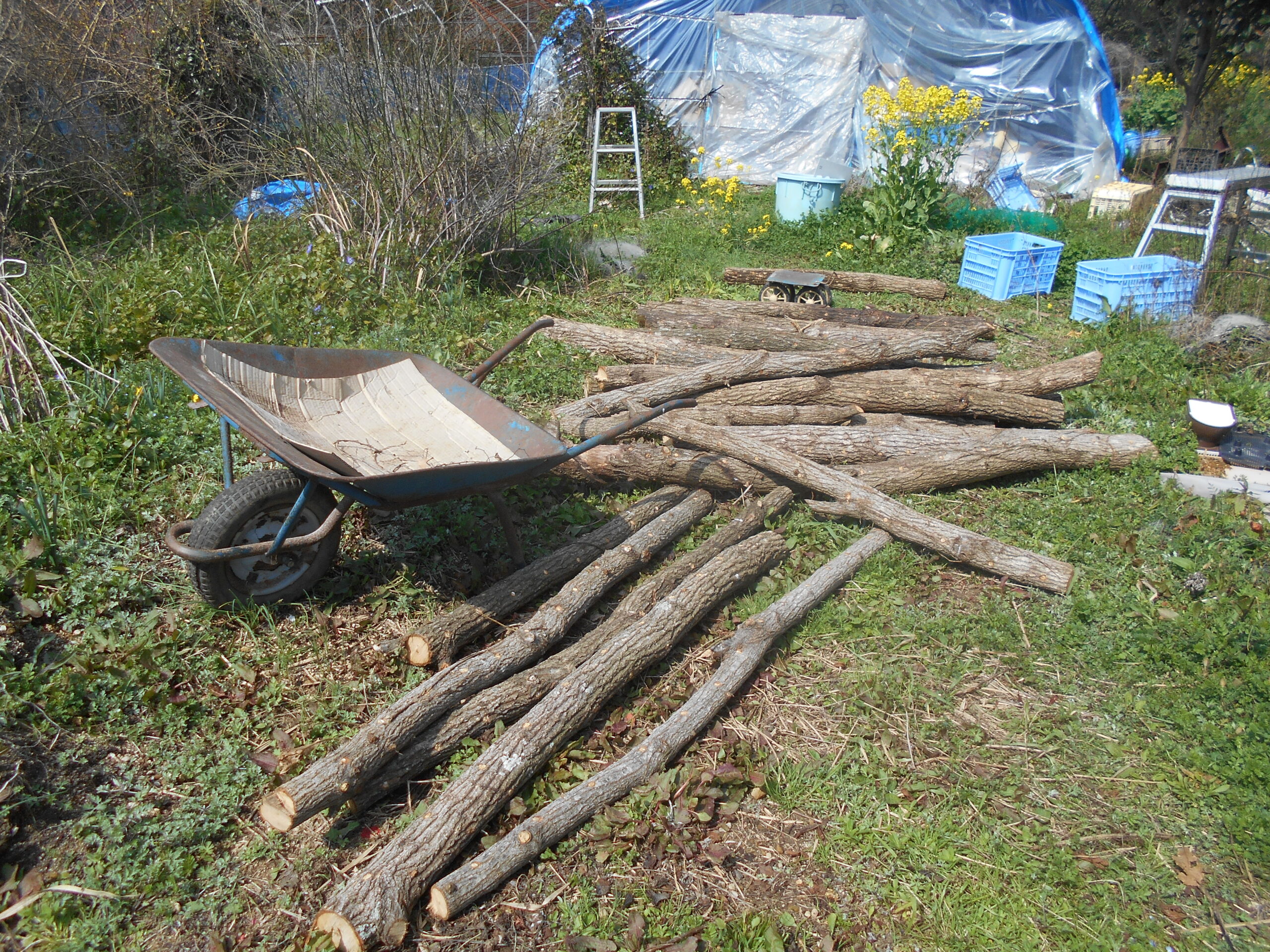 椎茸のコマ打ちをおこないました。 今年は沢山のボタ木を用意しました。 2年後には沢山の椎茸がはえるでしよう。