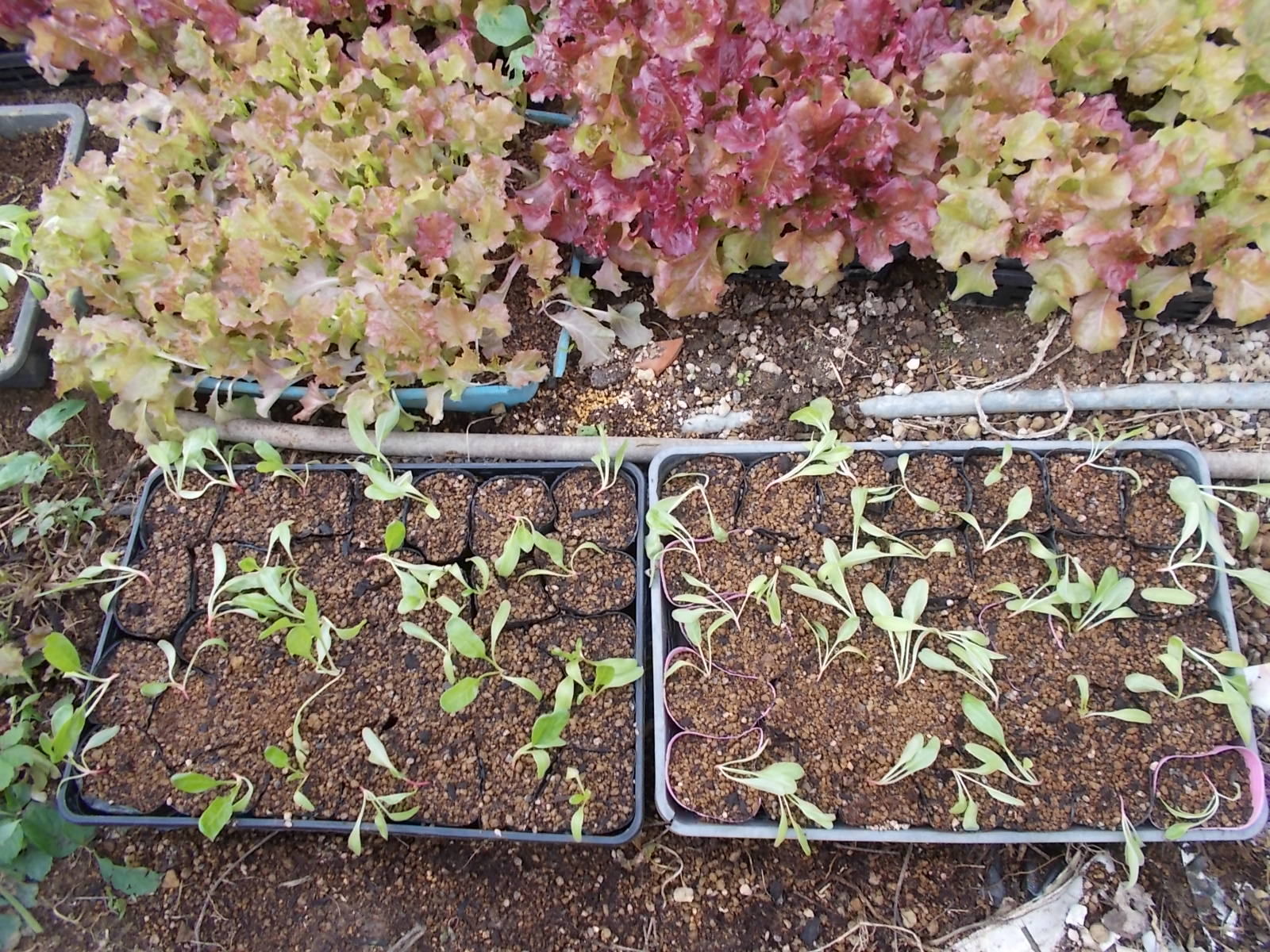 フダンソウの苗をポツトに移植しました。二箱ポット苗ができました。 秋から冬にかけて葉野菜として重宝します。