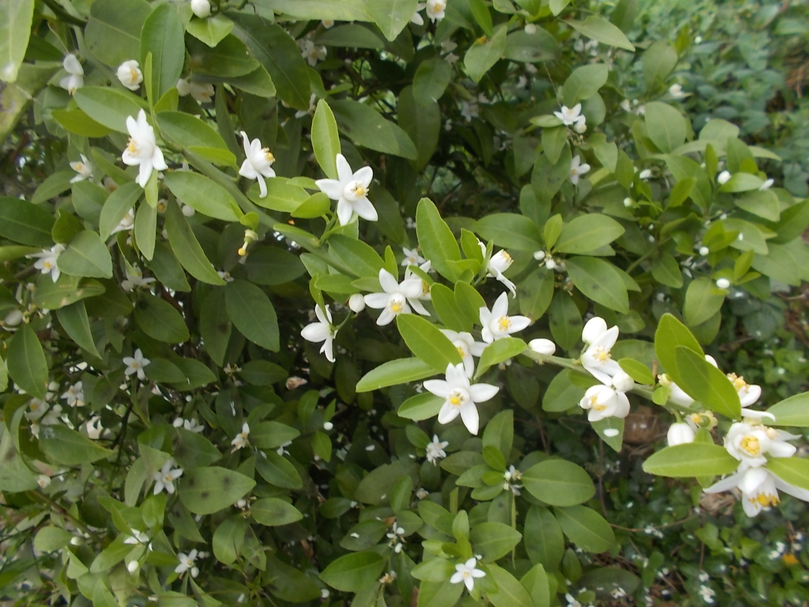 シークワーサーの花が咲いています。今年は花つきが多いようです。 柑橘の花の匂いがとても良い。蜜蜂が元気よく飛び回っています。