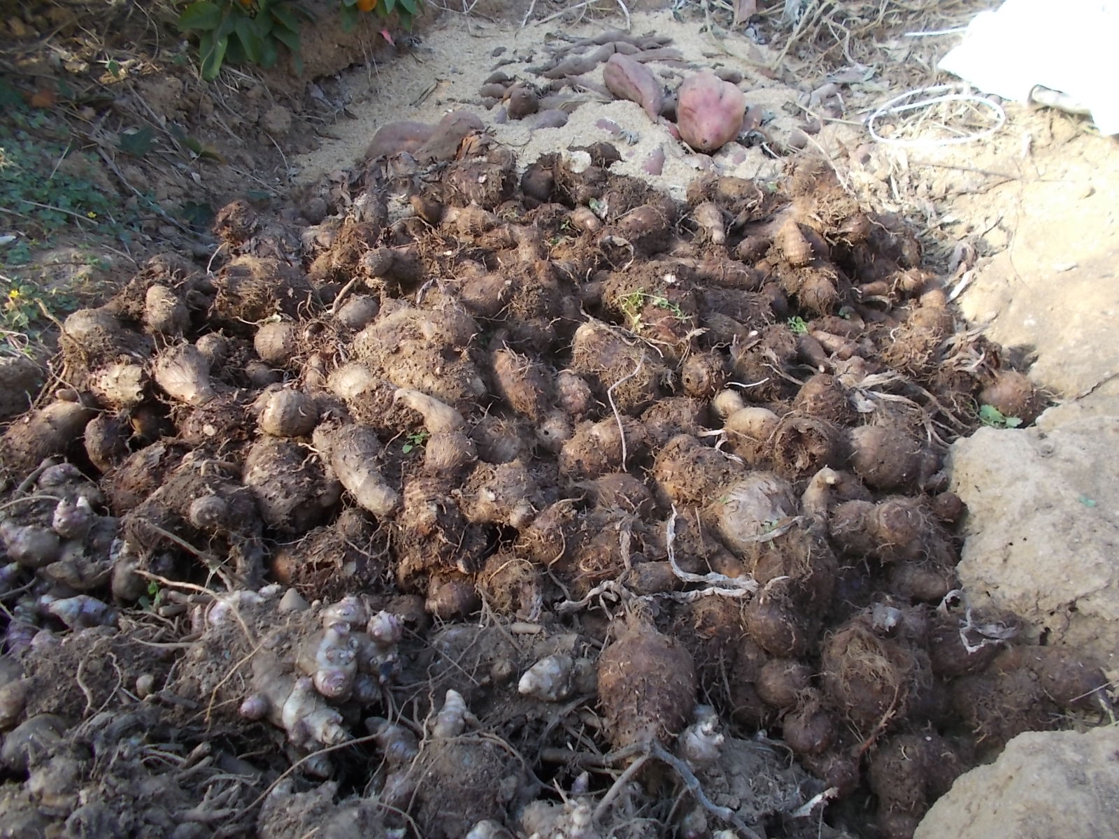さつま芋、里芋、等の貯蔵を終えました。最後に籾殻をたっぷりかけました。 冬の間、順次取り出して食べます。