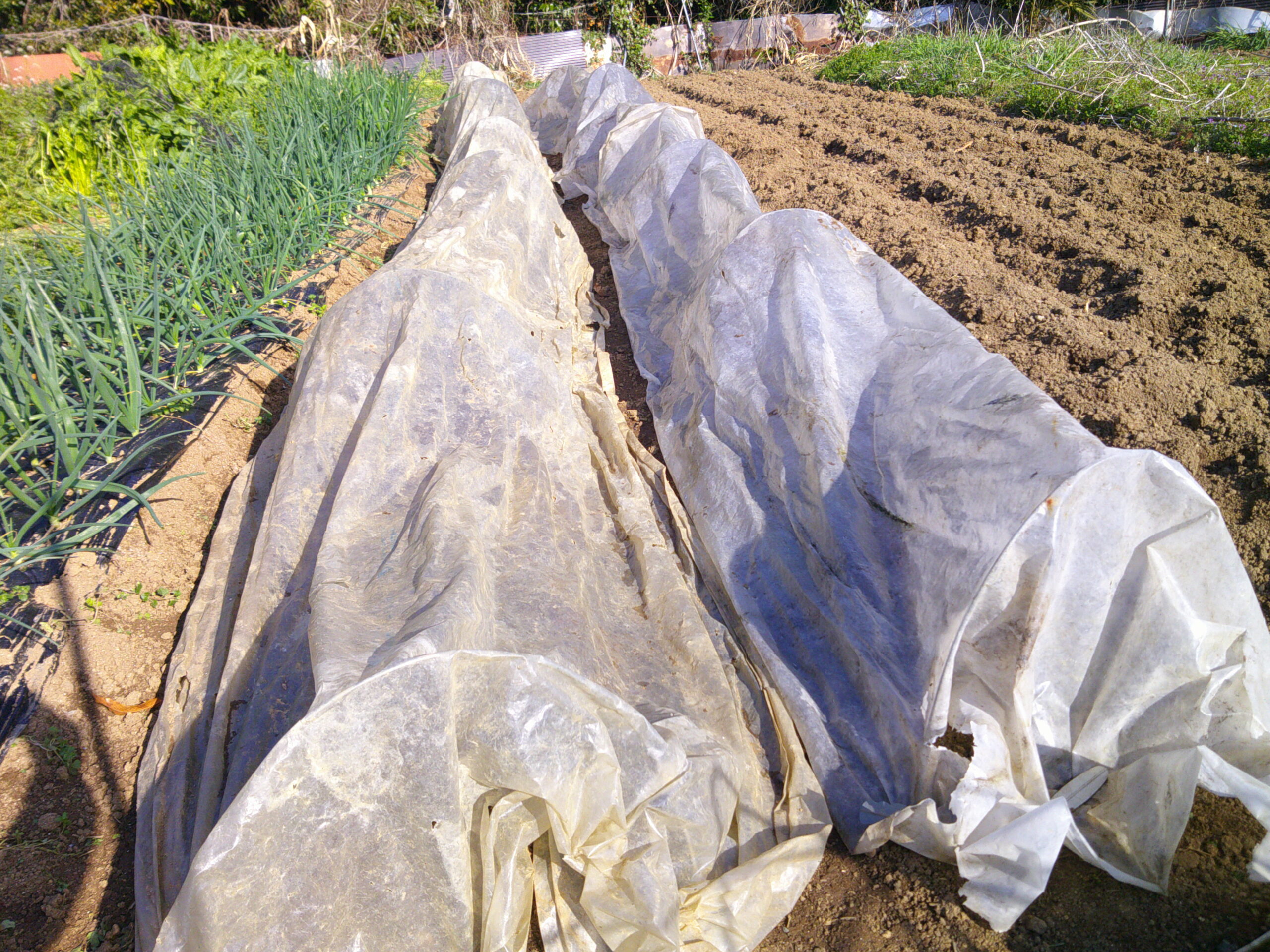 春分の日が過ぎ、暖かくなってきたので春野菜の種まきをしました。 春大根、人参、ごぼう等をまいて、ビニールで覆いました。