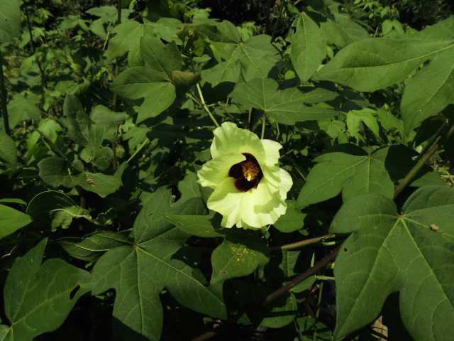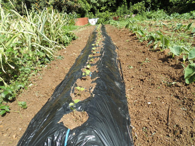 日本綿の苗が大きくなりました。 雨の前なので畑に定植しました。
