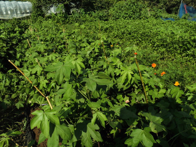 日本綿を定植しました。畝を作って黒マルチをはって 日本綿の苗を定植しました。