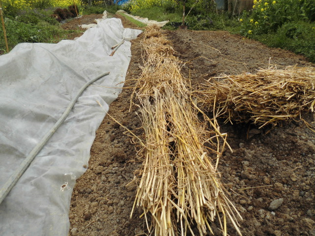 竹で支柱をつくり、支えてやりました。