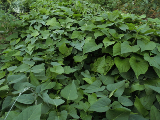 雨と風によってヤーコンが倒れていいました。