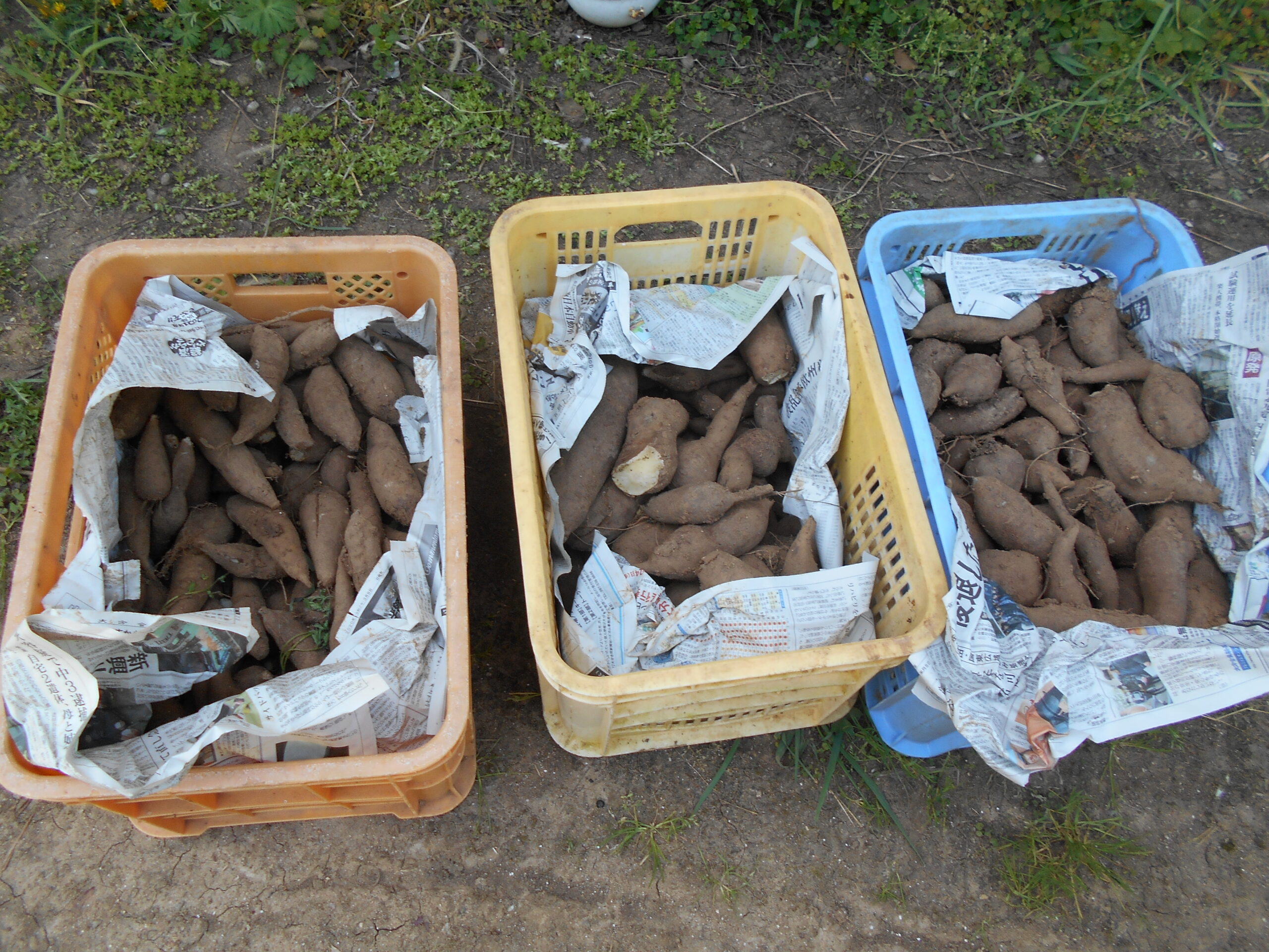 今年は豊作です。芋蔵に入れて、もみ殻をかけて貯蔵します。