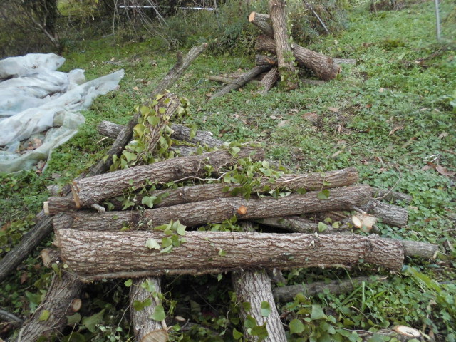 椎茸のコマ打ちをおこないました。 今年は沢山のボタ木を用意しました。 2年後には沢山の椎茸がはえるでしよう。