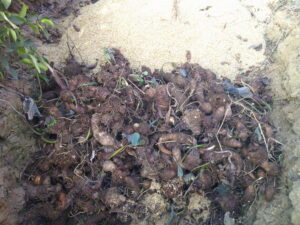 寒くなってきたので、さつまいもと里芋を穴にいれました。 順次、もみ殻をかぶせていきます。 こうして冬の間、徐々に食べます。