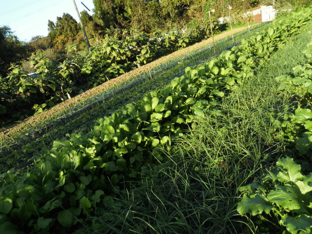 ブロッコリーはよくできていますが、葉は鳥に食べられています。冬でも青々とした野菜を食べることができる杵築はよい所だと思います。