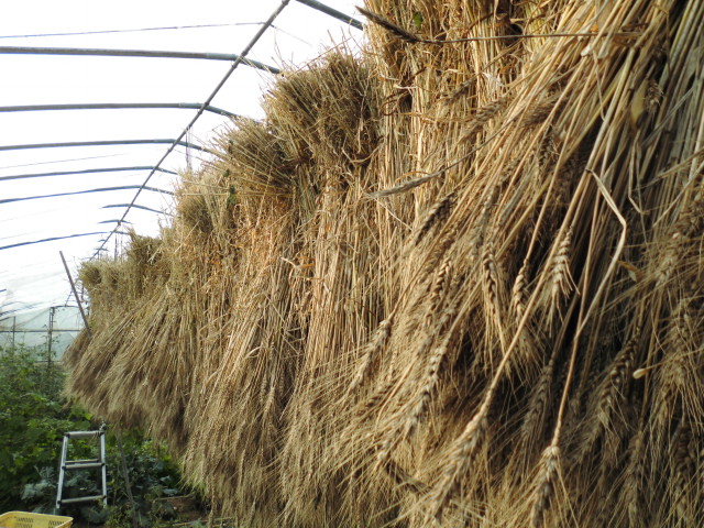 パン用小麦、みなみのかおりの天日干しをしました。 完全無農薬なので、天日干しをしないと虫が入ります。