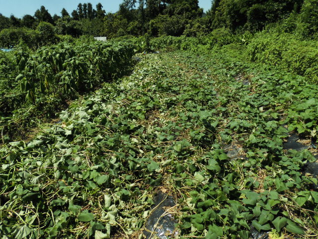さつま芋を草をとって蔓反しをやりました。 そのままにしておくと蔓のところに根が出て、 栄養分がとられます。 よって真夏に草をとりながら蔓をひ...