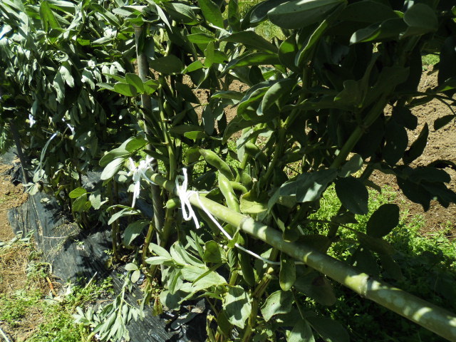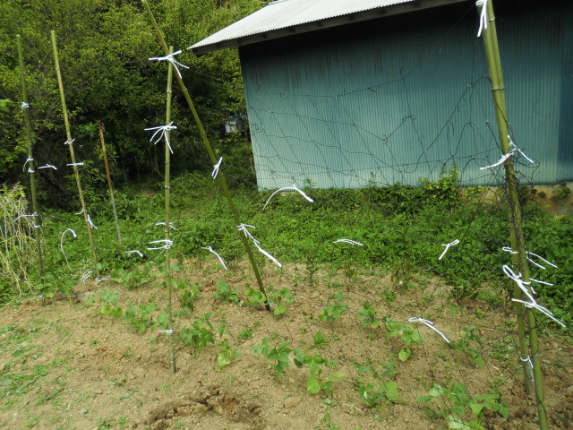 竹で支えを作って 蔓をはわせる網を張りました。 これで夏にいんげん豆がたくさんできるでしょう。
